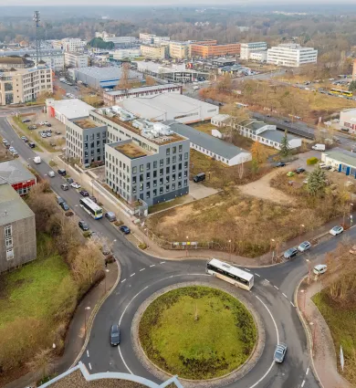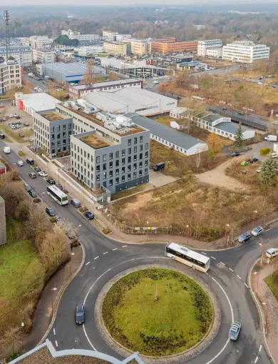 Die Rheinstraße 11 liegt in einem etablierten Gewerbegebiet von Teltow, direkt an der südlichen Stadtgrenze Berlins. Der Standort ist geprägt von modernen Büro- und Gewerbeansiedlungen sowie einem vielfältigen Branchenmix. Mehrere Buslinien verkehren in unmittelbarer Nähe, der S-Bahnhof Teltow Stadt ist in wenigen Minuten erreichbar und bietet eine direkte Anbindung an das Berliner Stadtzentrum. Über die nahegelegene B101 sowie die A115 (AVUS) besteht eine schnelle Verbindung nach Berlin, Potsdam und zum Berliner Ring. Gastronomieangebote, Cafés und Nahversorgung befinden sich im direkten Umfeld und sorgen für eine gute Infrastruktur im Arbeitsalltag.